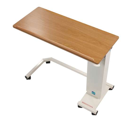 The Easi Riser Adjustable Overbed Tables are available in 3 different styles. This model of Easi Riser Overbed table features a C base for use with chairs and wheelchairs. It is height adjustable from 74 to 109cm and features a magnolia frame. The lip on the table top is designed to stop items sliding onto the user.