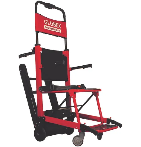 The Globex Stair Climber is our battery powered chair that enables one person to provide access and egress for a physically impaired person safely and easily up and down stairs in the event of an emergency or when lifts can not be used