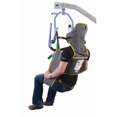 The Oxford® Comfort Access Padded sling with head support has been designed specifically to facilitate the toileting process, allowing easy access to clothing. For use in conjunction with a 4-point positioning cradle, the patented Securi3 clip system ensures no inadvertent detachment of the sling. It is not a general purpose sling and will only suit approximately 25% of clients.