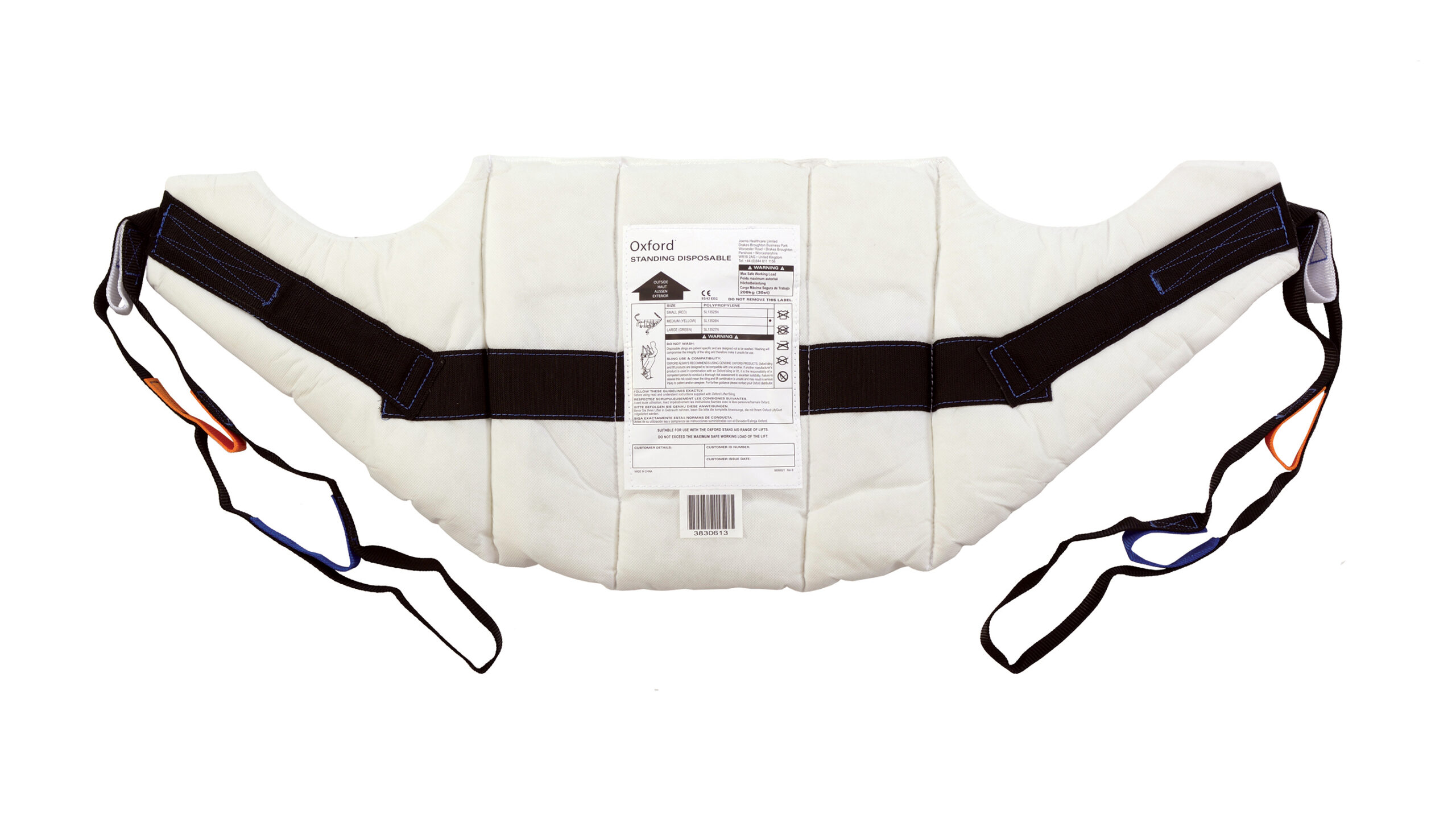 The Oxford® Disposable Standing sling is an easy fit sling suitable for standing and supporting. It is not a general purpose sling and clients should be assessed as to their suitability. It will not suit double amputees or lifting from a horizontal position. In the interests of avoiding cross-infection, this sling is specifically designed for single patient use only.