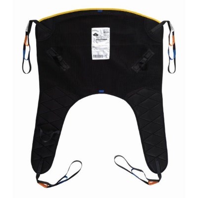 Padded leg sections for increased comfort with colour coded binding which indicates sling size and positioning handles which allow patient repositioning. Coloured attachment loops promote correct/safe positioning and a modesty loop which helps protect patient dignity during transfer. Can be customised to fulfil patient specific needs.