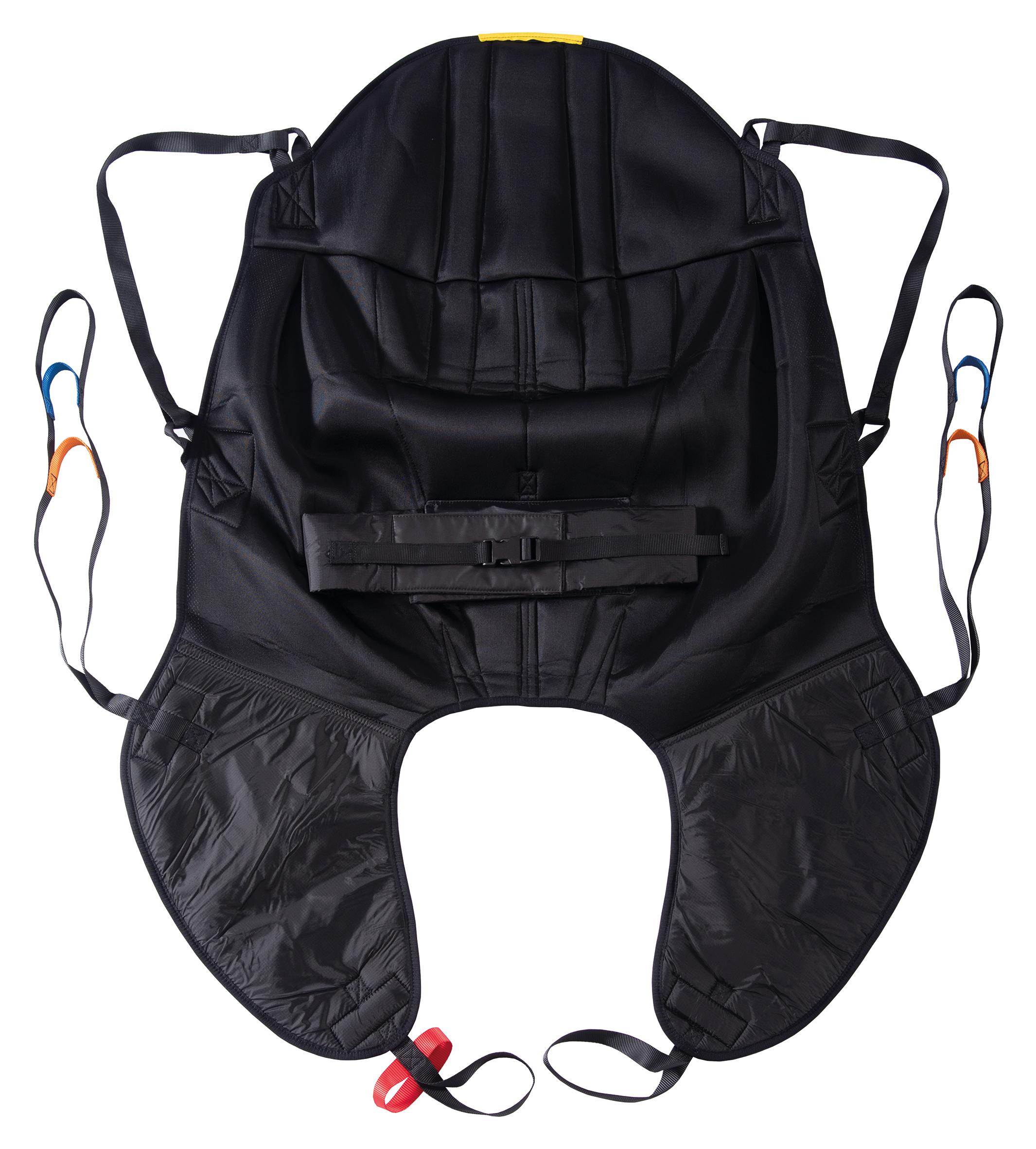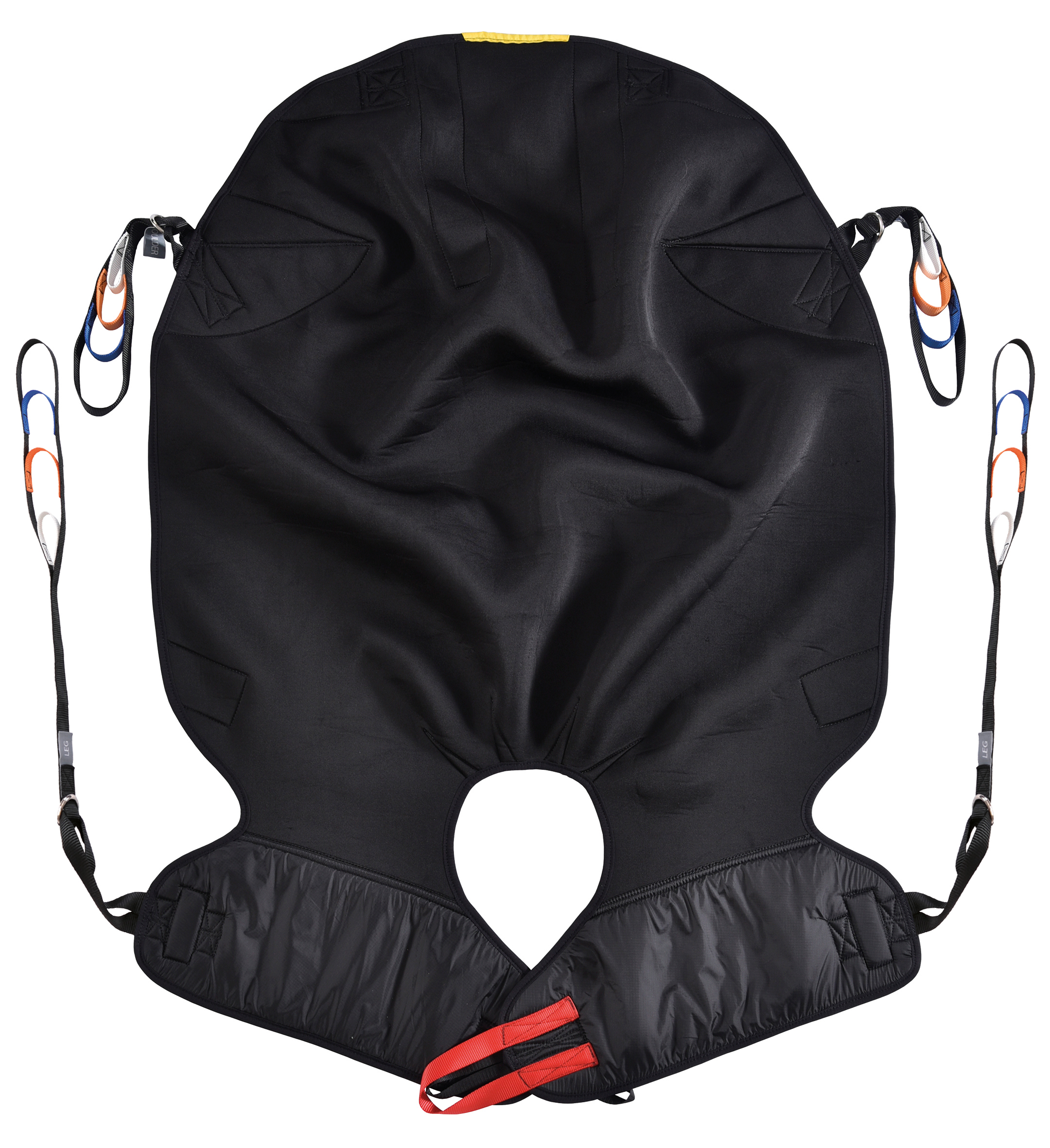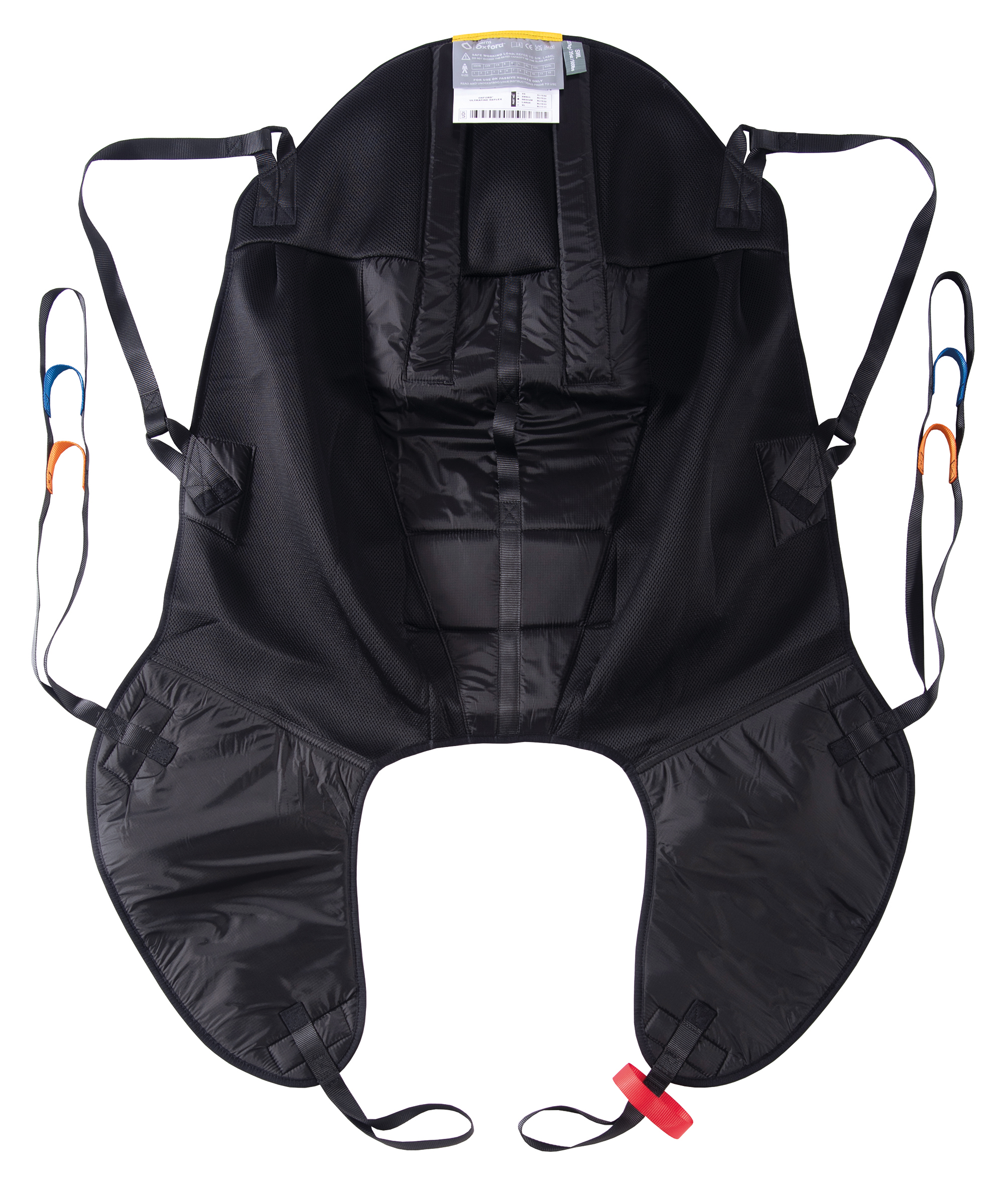 Head support and body belt provides added support and security. Suitable for amputees following careful assessment. Colour coded binding tab on top section to denote size, coloured attachment loops which promote correct/safe positioning and modesty loop helps protect patient dignity during transfer. Can be customised to fulfil patient specific needs.